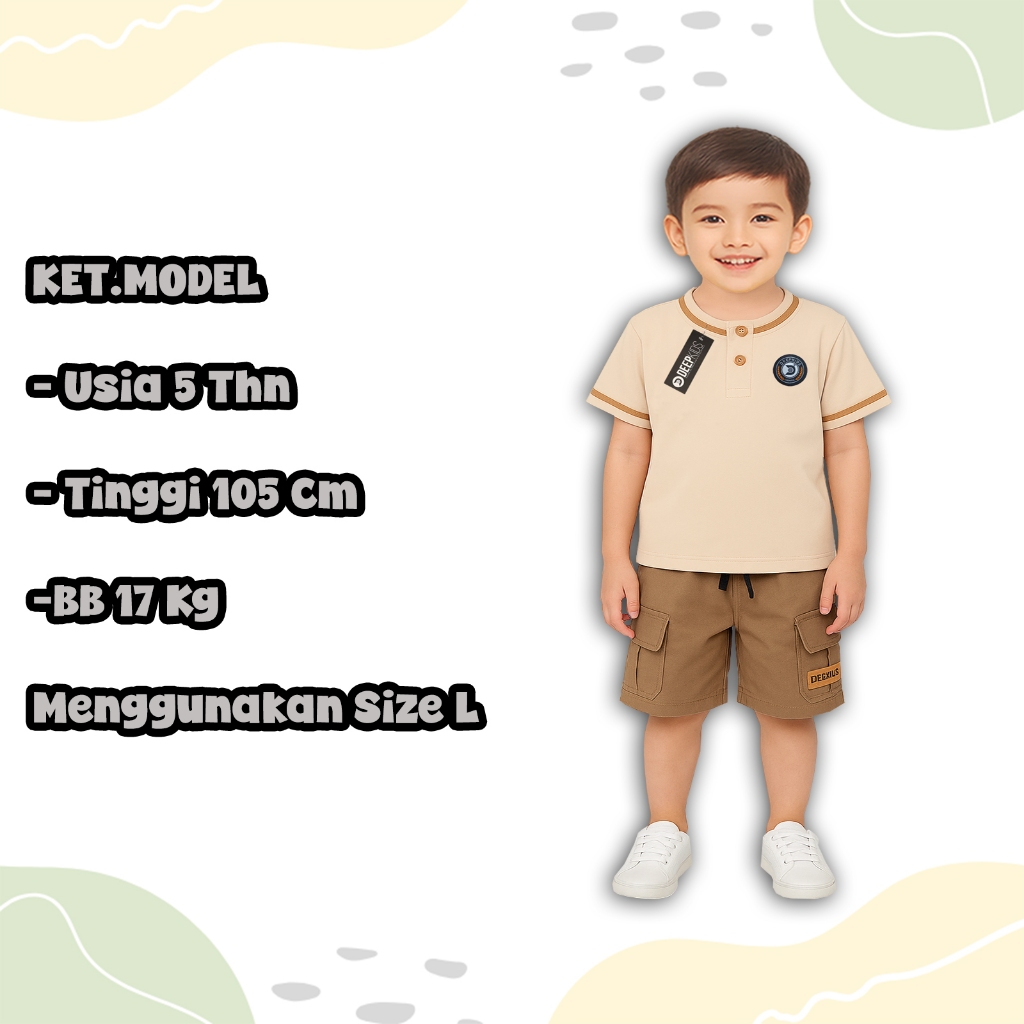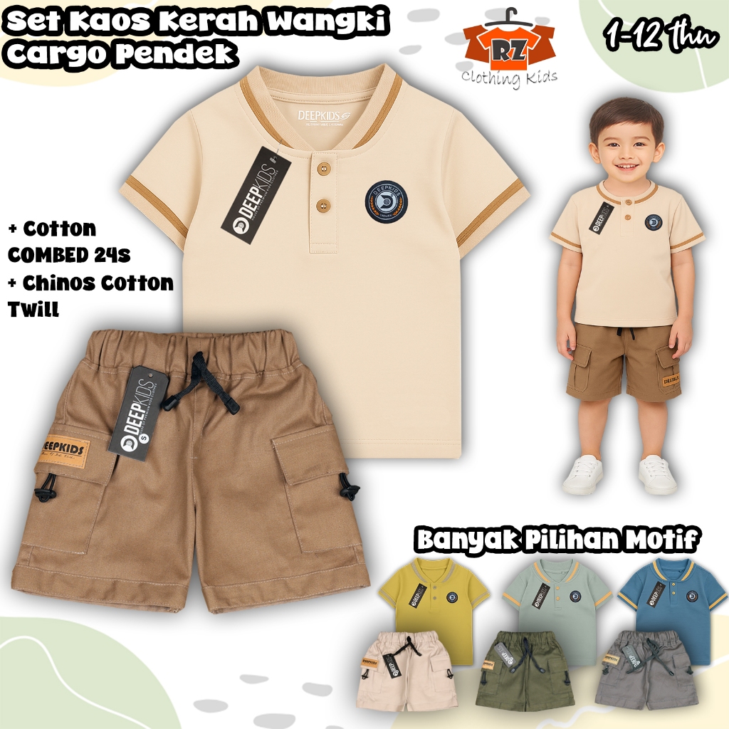 Setelan Anak Laki Laki Distro Kaos Anak Kerah Wangki & Celana Anak Chinos Pendek Usia 1-12 Tahun Bahan Premium untuk usi