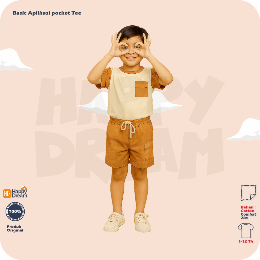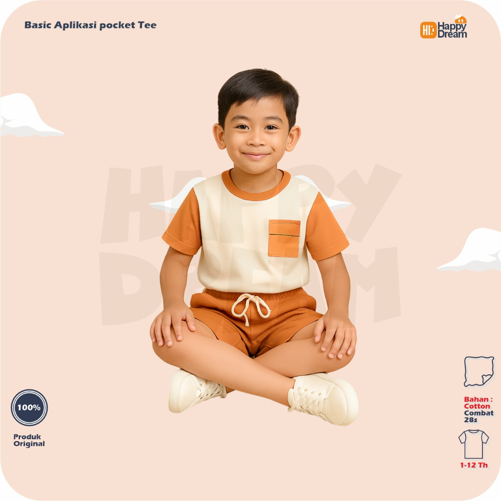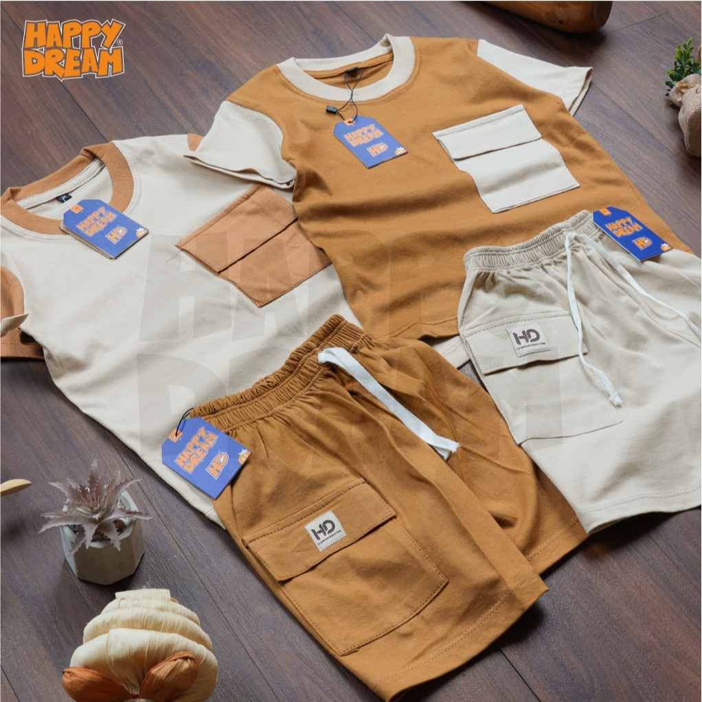 HAPPYDREAM Kaos Baju Setelan Anak Aplikasi Saku Ford Laki Laki Perempuan 1 - 8th cotton 30s