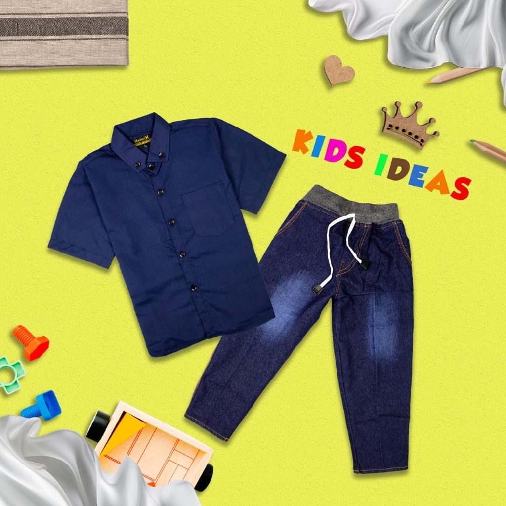Setelan Anak Laki Baju Kemeja Lengan Pendek dan Celana Panjang Jeans konveksi Aji