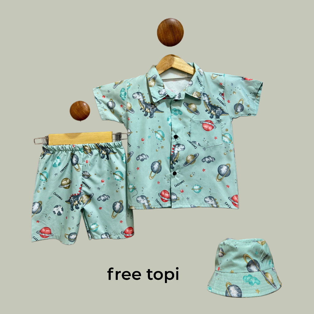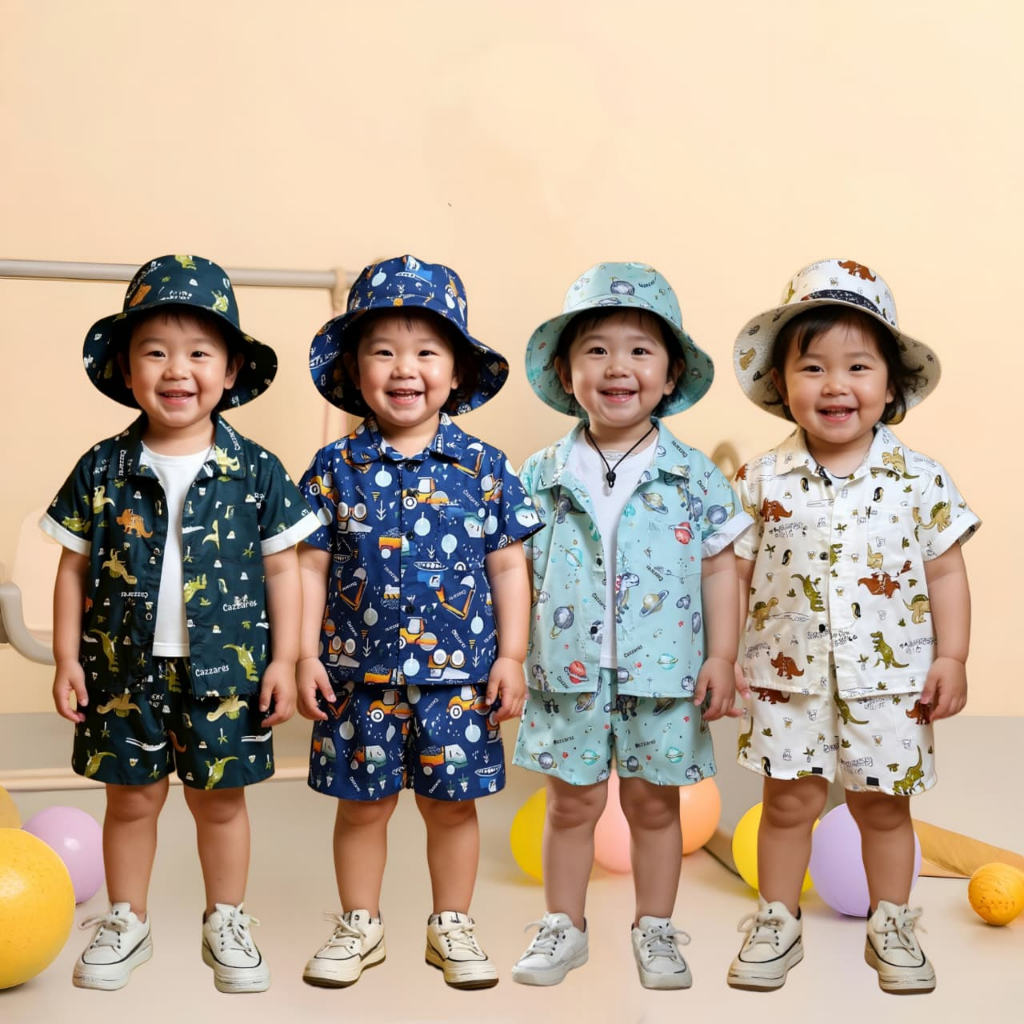 Setelan Baju Plus Topi Anak Usia 1-6 Tahun Laki-laki dan Perempuan
