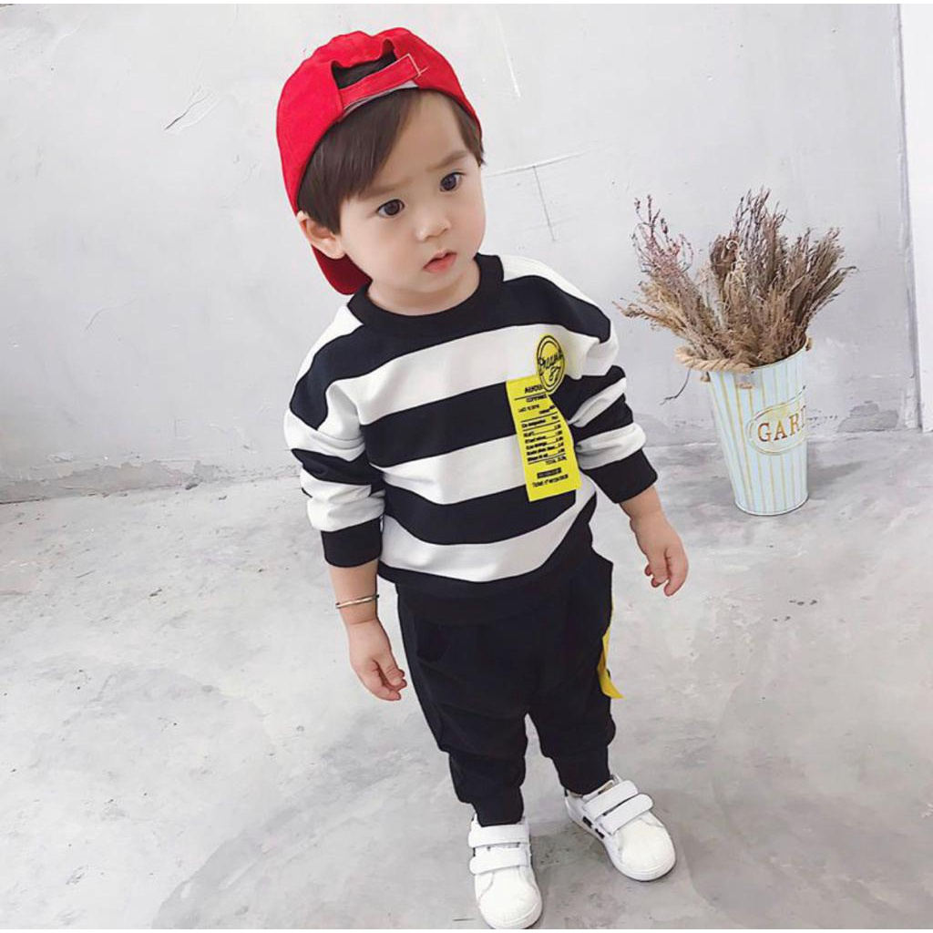 BAJU ANAK LAKI LAKI USIA 1 - 6 TAHUN/SETELAN ANAK MOTIF KUCING BLACK WHITE