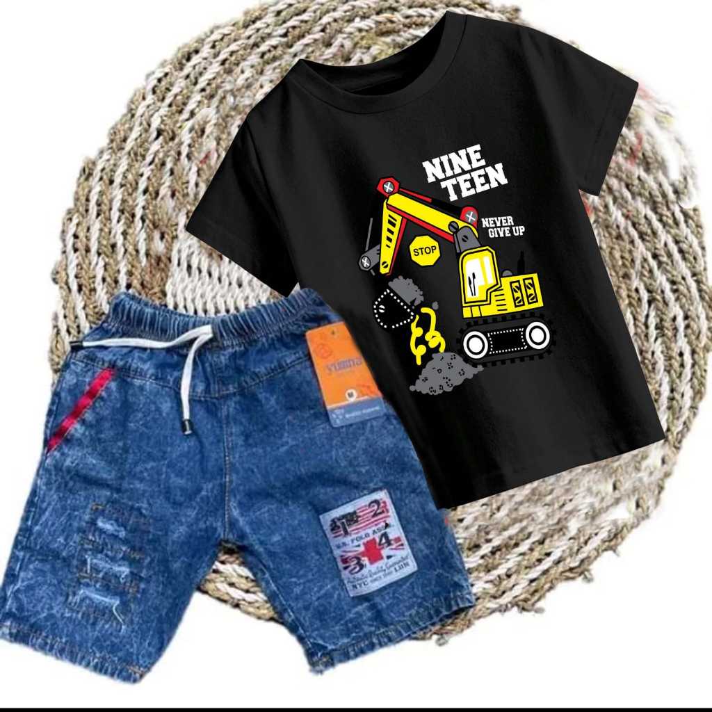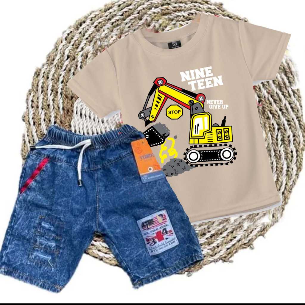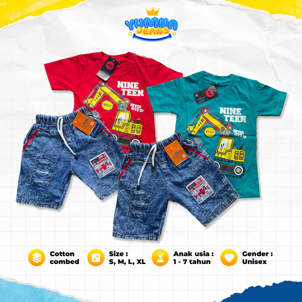 Setelan Anak Laki Laki Perempuan Usia 1-10 Tahun One Set Atasan Kaos Beko & Bawahan Celana Jeans Pendek anak