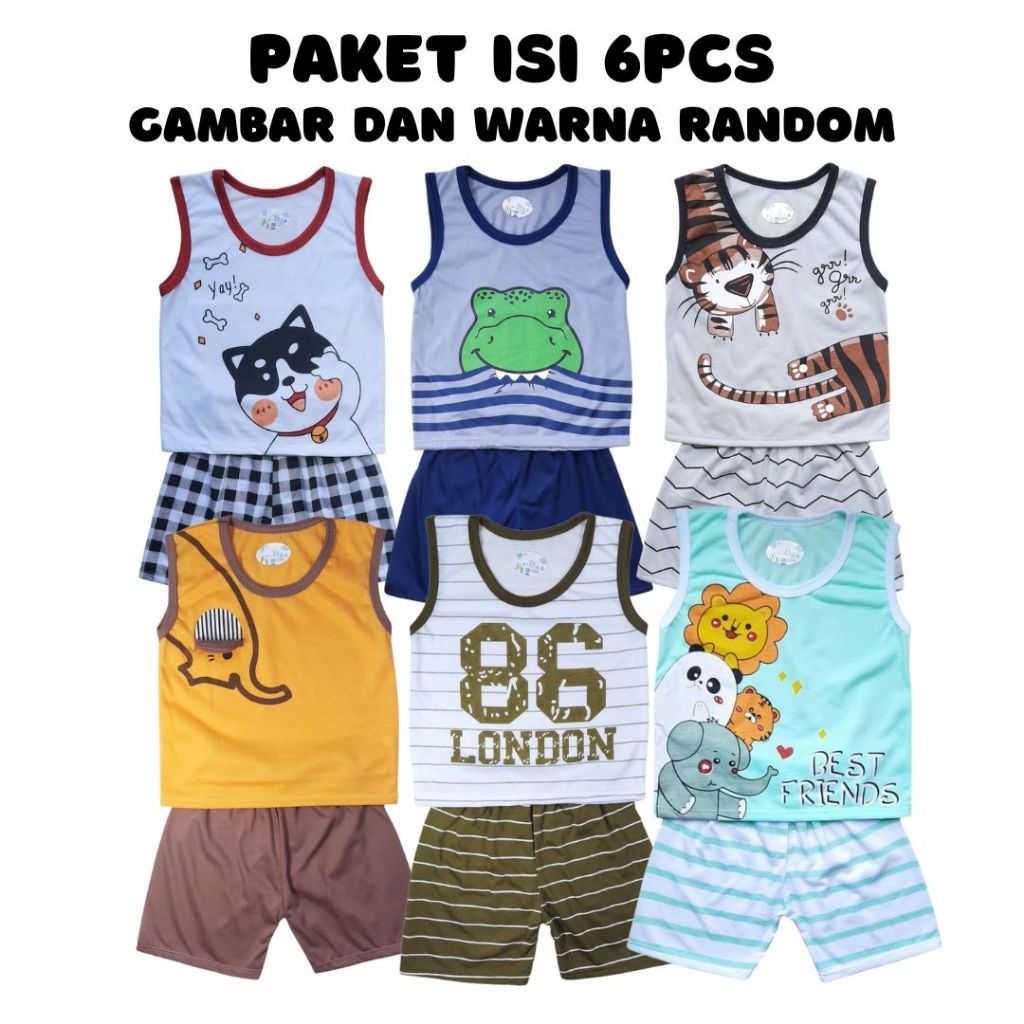 PAKET 3 PCS Setelan Singlet Anak Laki Laki 0-2 Tahun / SNI / Baju Baby Leticia Setelan Lekbong