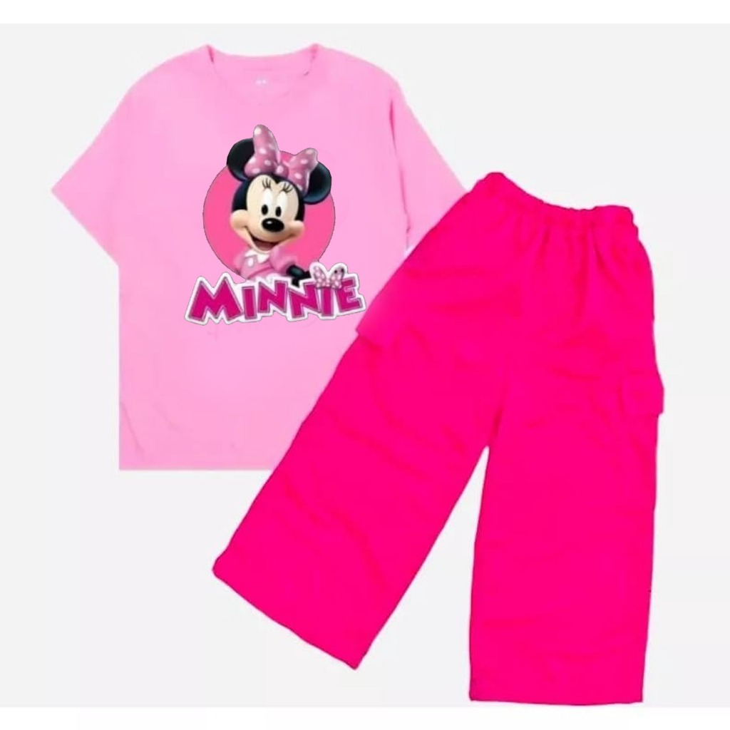 SETELAN ANAK KAOS BARBIE DENGAN CELANA KULOT KARGO TERBARU / SETELAN BARBIE ANAK PEREMPUAN USIA 1-12 TAHUN / BAJU ANAK M