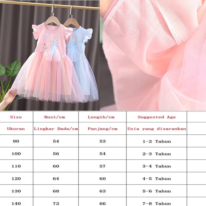 1-8Thn Cantik Frozen Baby Princess Party Dress Elsa Gaun Anak Perempuan rainbow unicorn dress anak