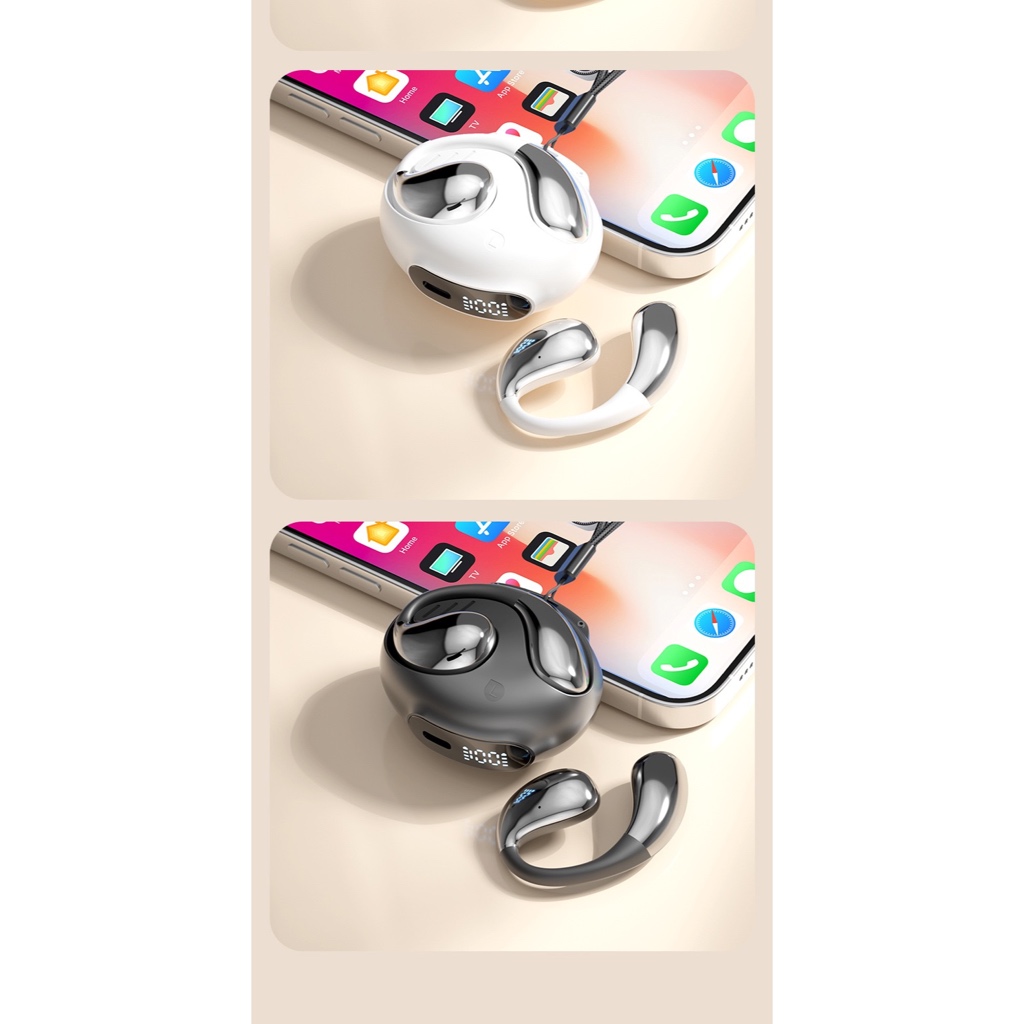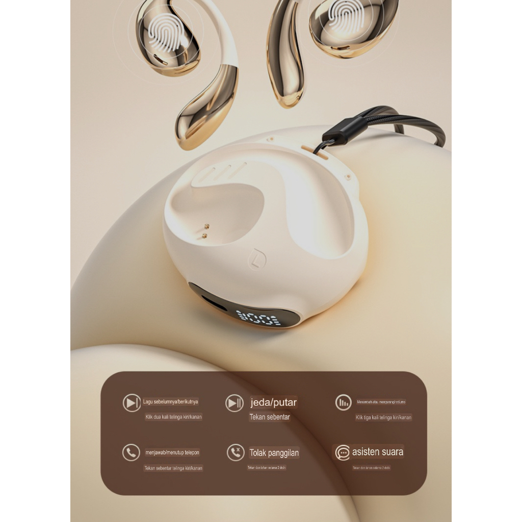 TWS Bluetooth 5.4 Open Ear Earphone - Headset Wireless Desain Futuristik Baterai Tahan 60 Jam Type-C Fast Charging HiFi