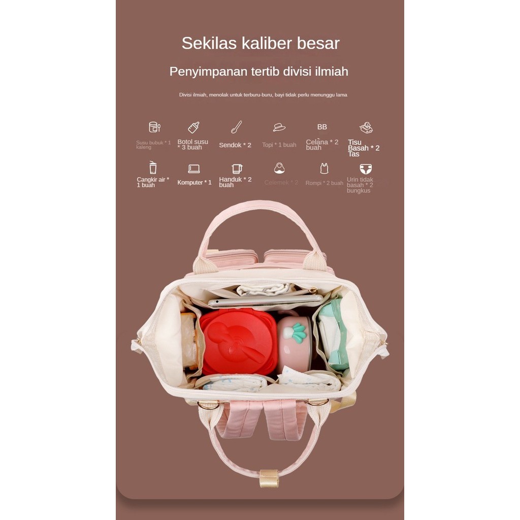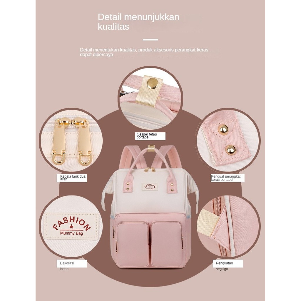 Tas Mama Jepang Minimalis - Ransel Kapasitas Besar dengan Kantong Botol Susu, Tas Bayi Anti Air Ringan, Multifungsi deng