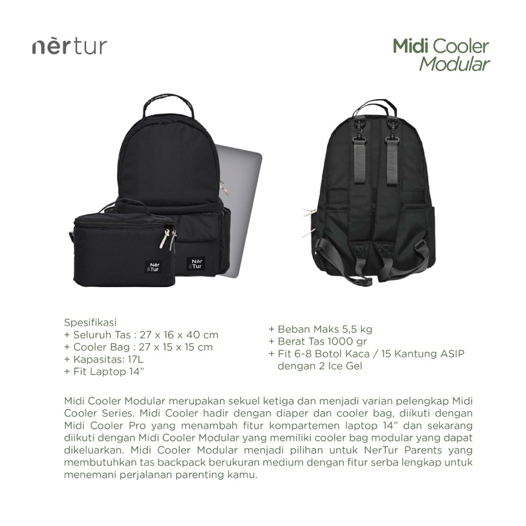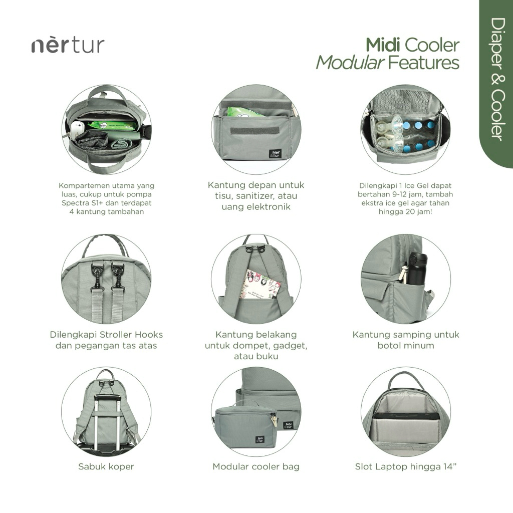 NERTUR Tas Perlengkapan Bayi Diaper Bag & Cooler Bag Midi Cooler ular 19L Fit Laptop 14"