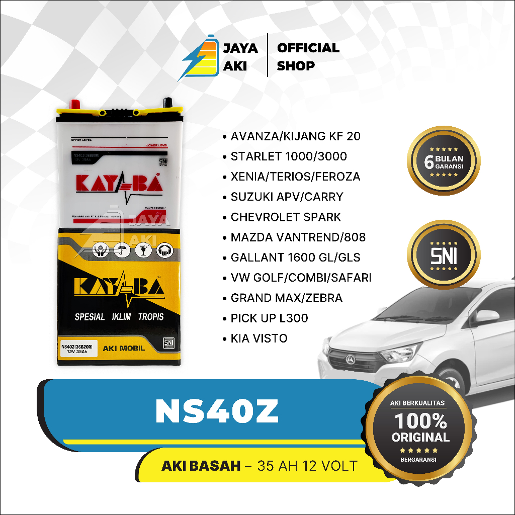 Aki MOBIL KAYABA NS40Z 12V 35AH TOYOTA AVANZA XENIA GRANDMAX APV TERIOS RUSH GRANDMAX L300 CARRY ATOZ ZEBRA LUXIO SWIFT AKI BASAH AKI MOBIL