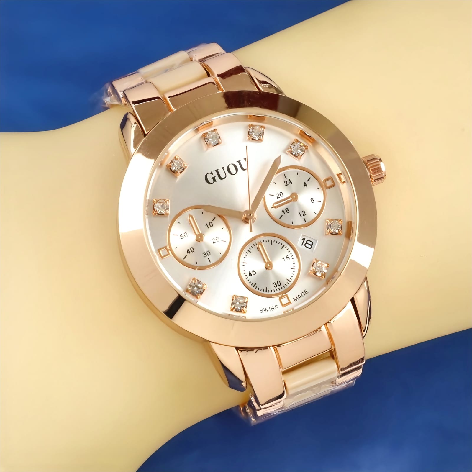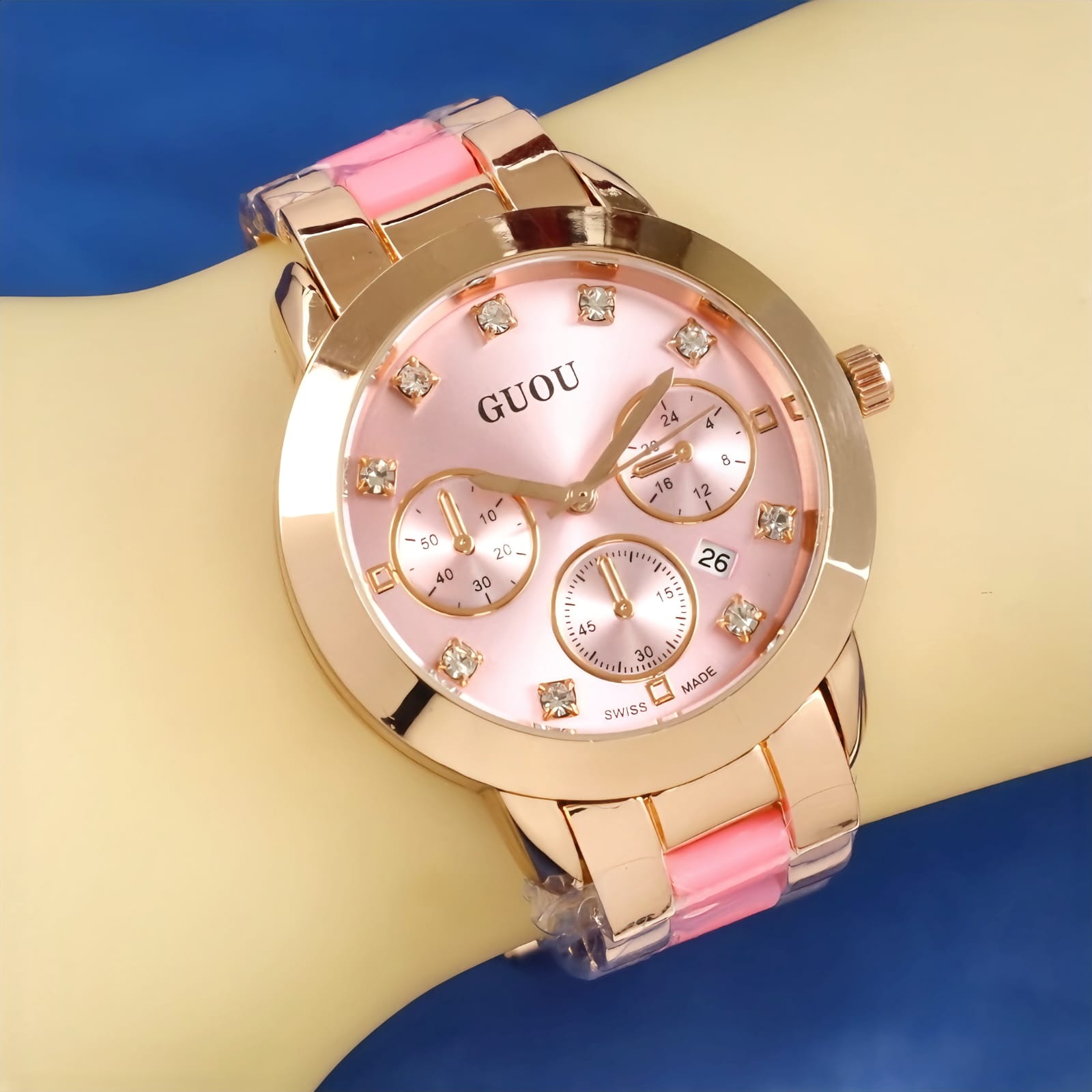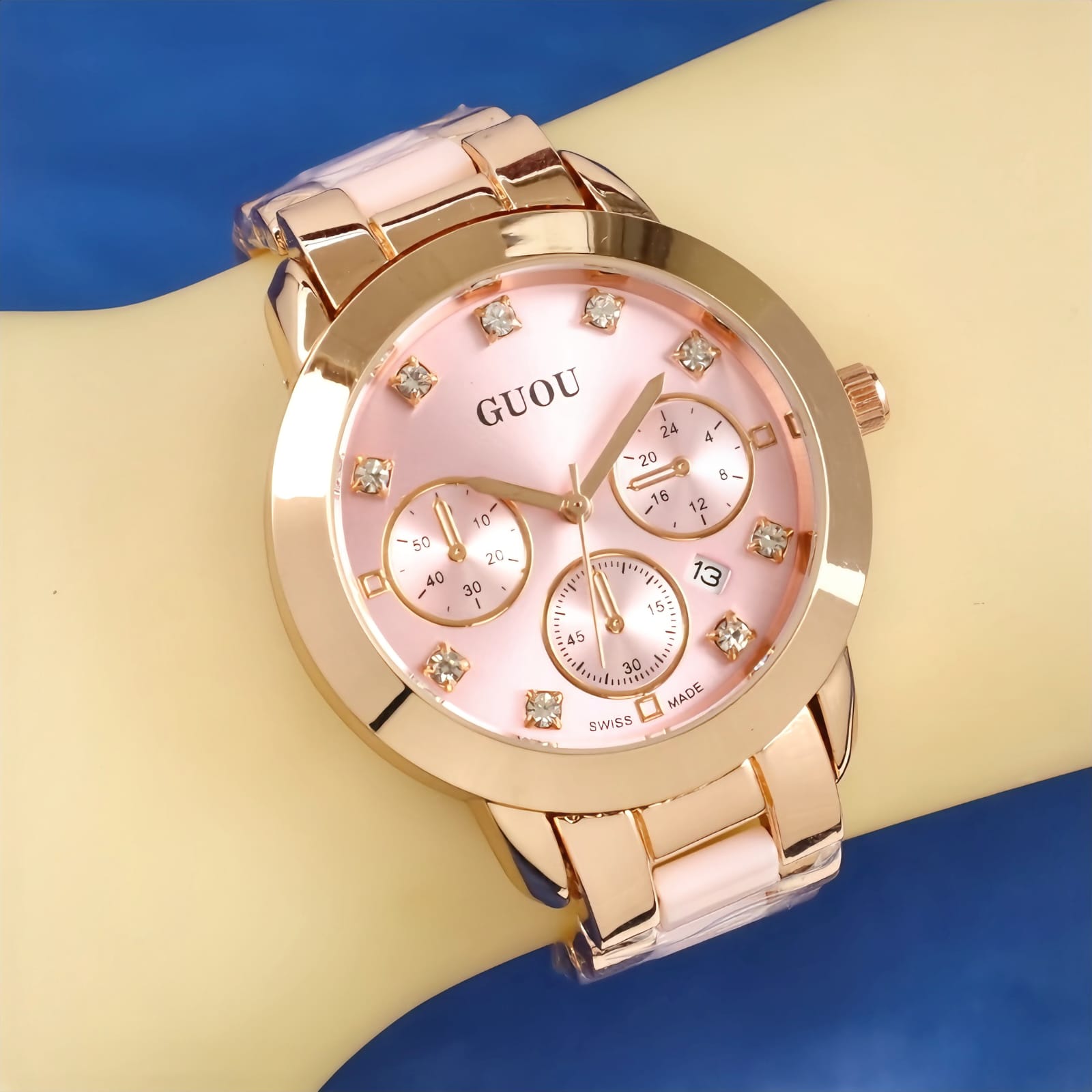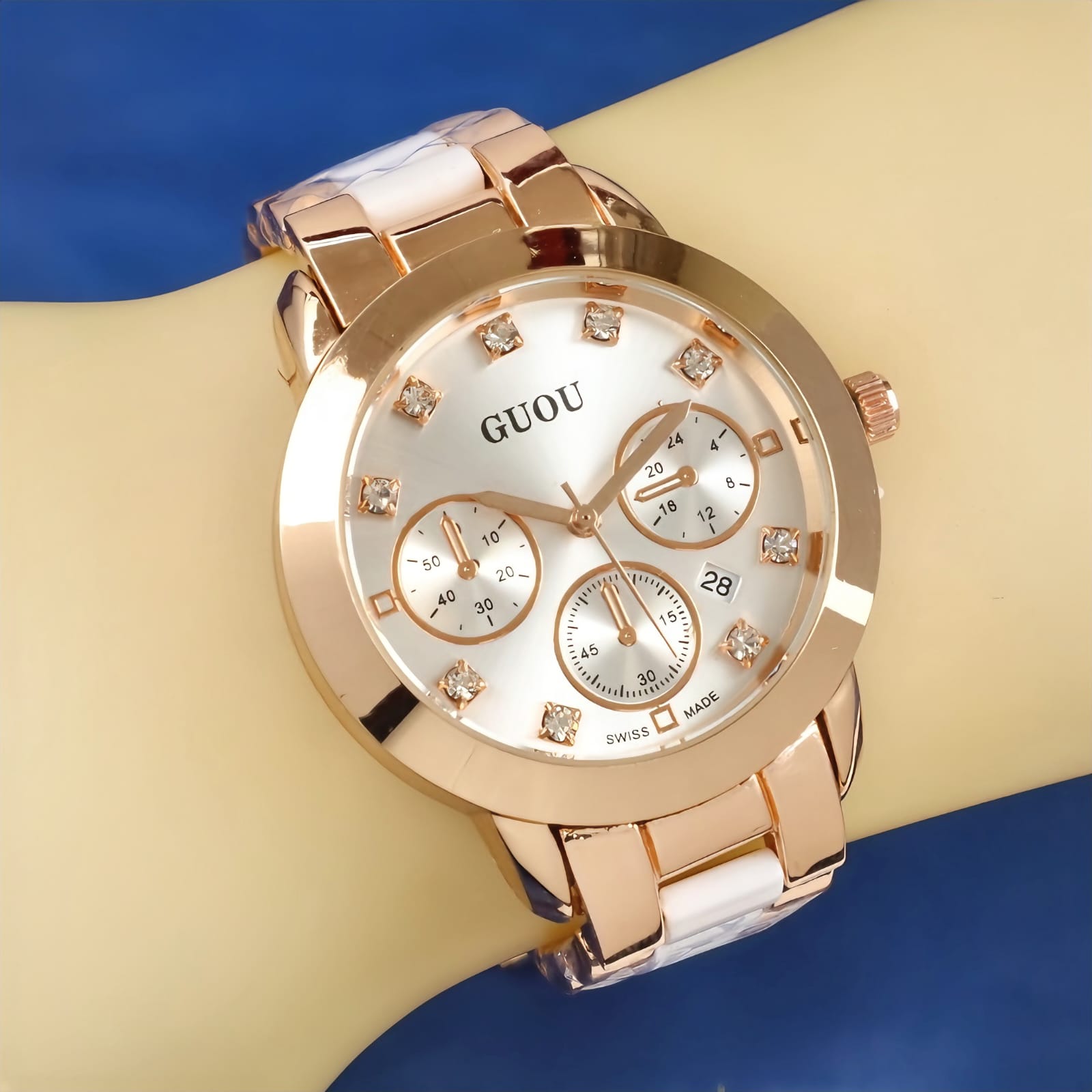 Jam Tangan Wanita Original Guou Rantai Stainless Steel Combinasi Free Box Paper bag