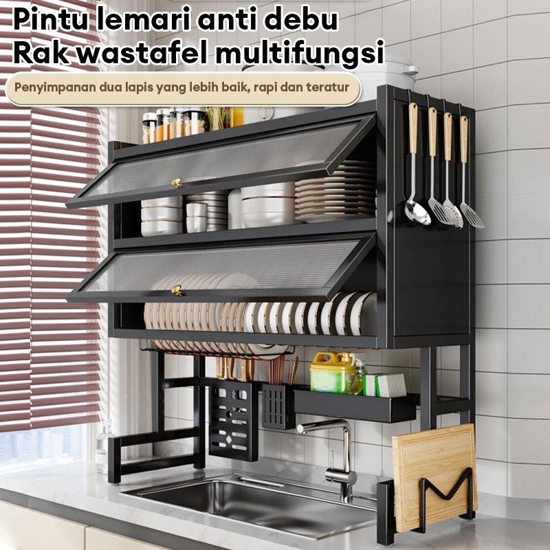 rak dapur 2 susun rak piring wastafel dengan kabinet rak wastafel cuci piring rak piring stainless steel Multifungsi