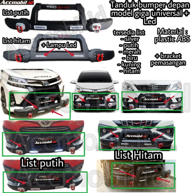 Tanduk bumper depan mobil model giga universal plastic + Led