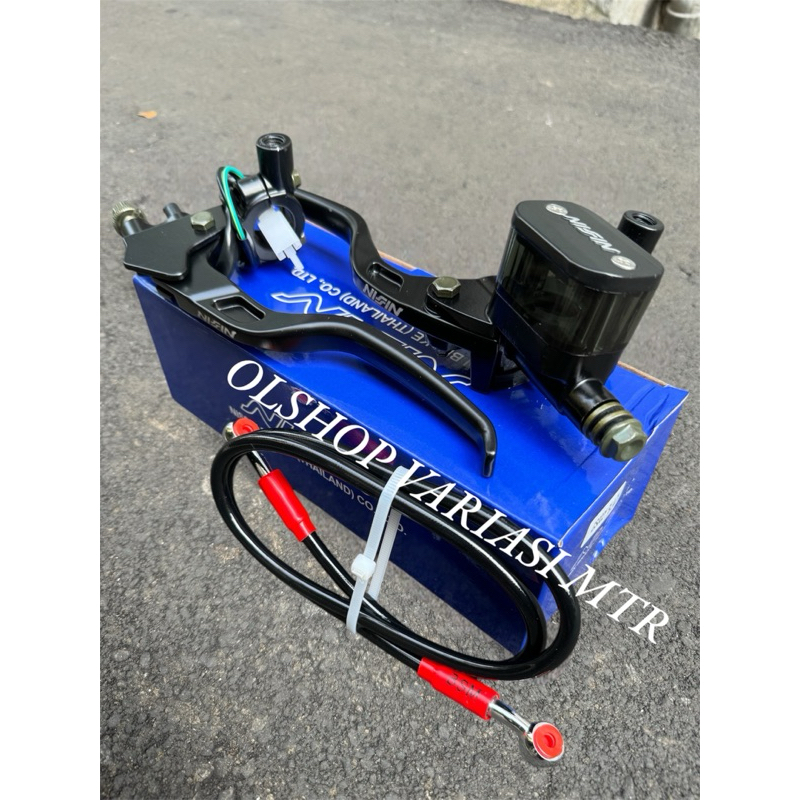 Handle rem master nizzin kotak model rcb sepasang set selang rem cakram 90-95cm semua motor