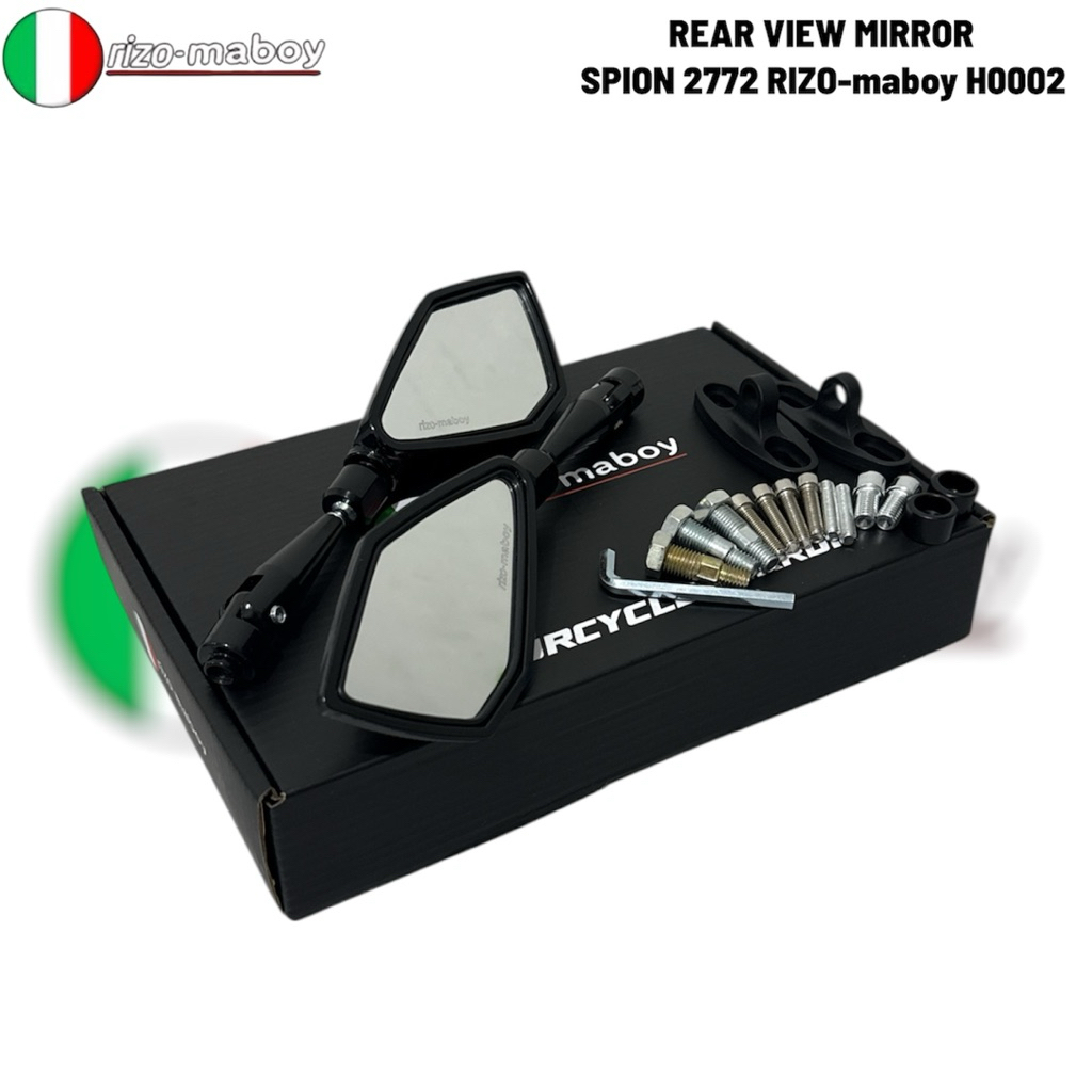 Rizo-maboy Racing - Spion Rizo-maboy 2772 Model Lipat Black Series Kaca Putih Universal Semua Motor