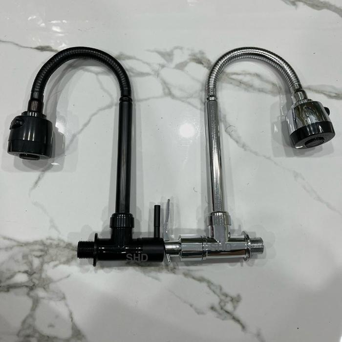 Kran Air / Kran Angsa Wastafel Cuci Piring / Kran Wastafel Cuci Piring 2 Model Pancuran Air Drat 1/2 inch - Tembok Hitam
