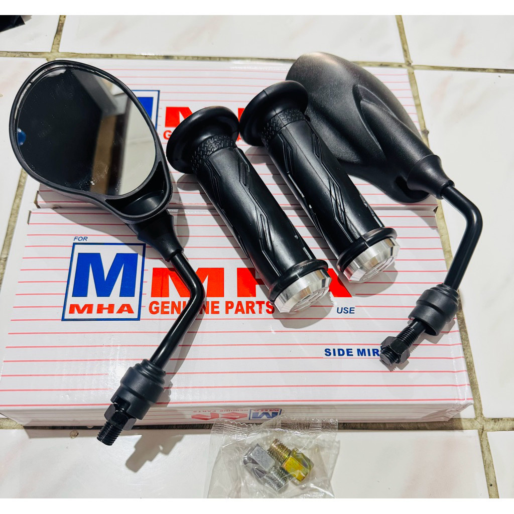 (paket hemat)kaca spion YMH x1 125z tangkai Chrome+grip ymha plus jalu heng Chrome universal
