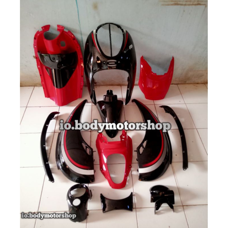 cover body full body Scoopy karbu warna hitam merah plus reflektor