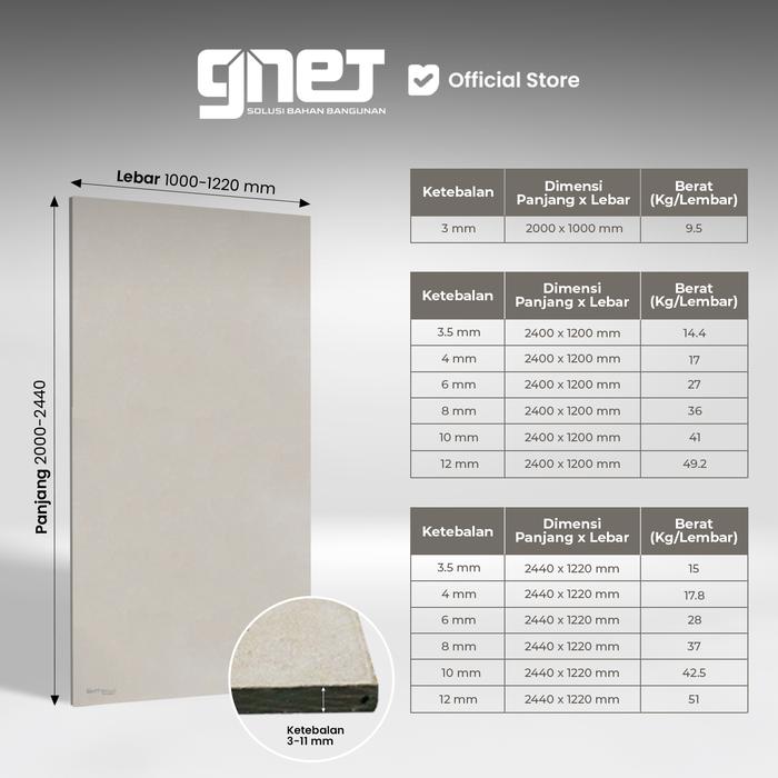 GNET Cement Board | Papan Semen Kalsi - 35mm 1200 2400