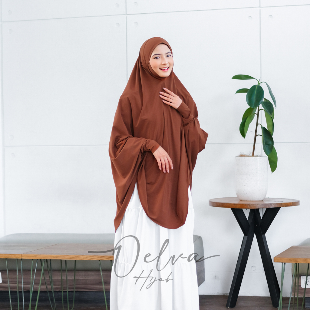 Oelva Hijab - Khimar Jumbo Melayu Lengan Jersey Premium - Model Menutup Dahi dan Dagu (Azwa Lengan)