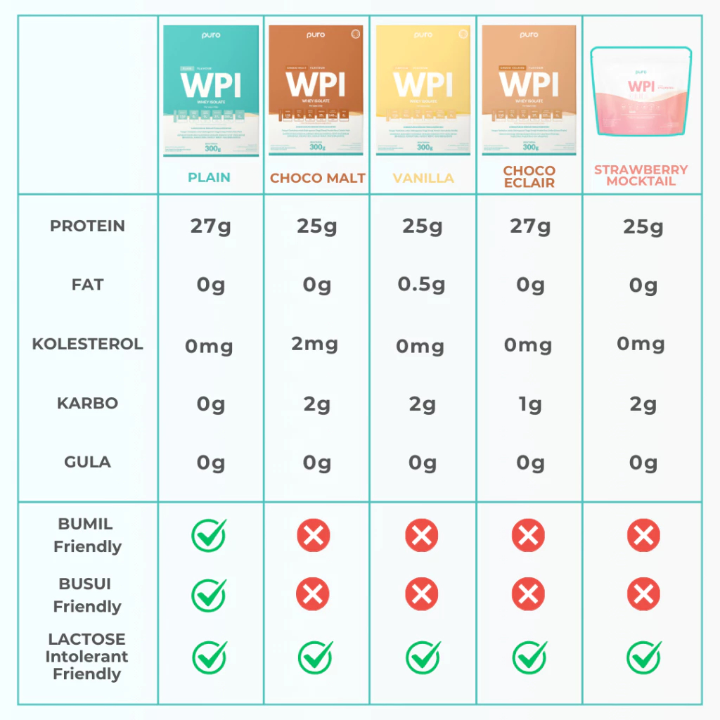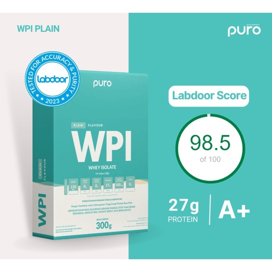 Puro WPI Whey Protein Isolate 300 gram Susu Protein Suplemen Fitness