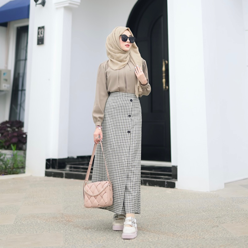 Rereyshop Nadine Skirt Rok Kotak Span Bahan Tebal Premium