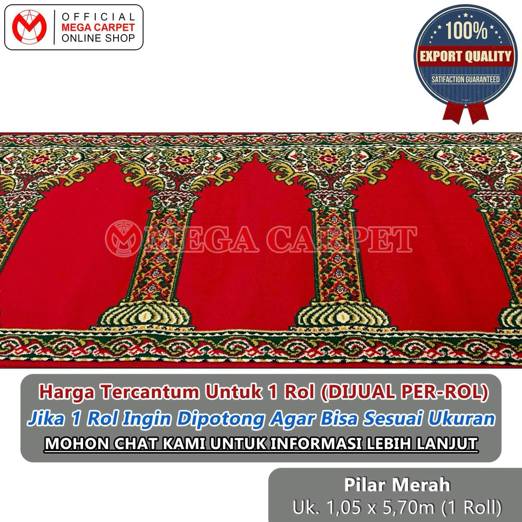 Sajadah Rol / Karpet Masjid Mushola (1 Rol ukuran 1,05 x 5,70 meter) - Motif Pilar Merah