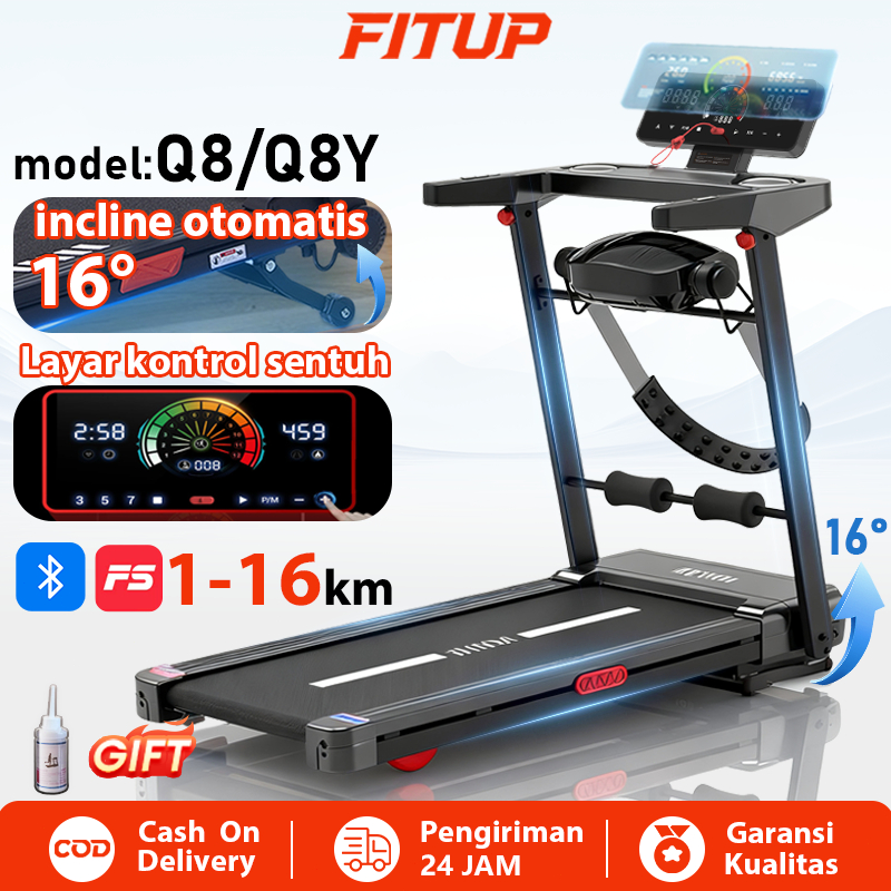 Fitup Treadmill Elektrik Q8/Q8Y Treadmill Incline Otomatis 1-16Km Treadmill Portabel Running Pad