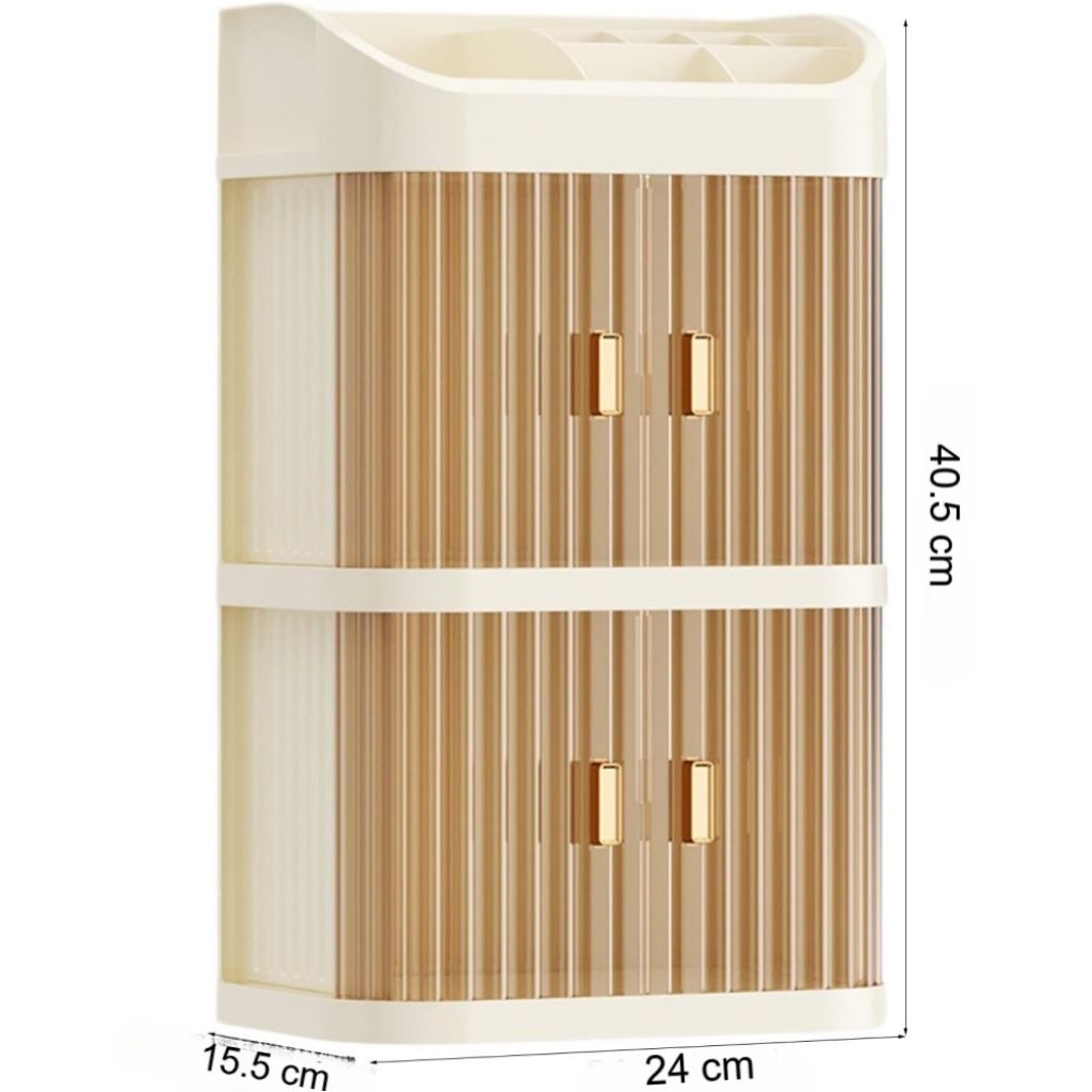 Rak Kosmetik Kotak Make Up Storage Box Organizer 3 Layer Aesthetic Tertutup - SM568 - Cream