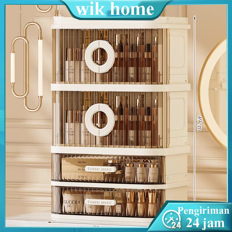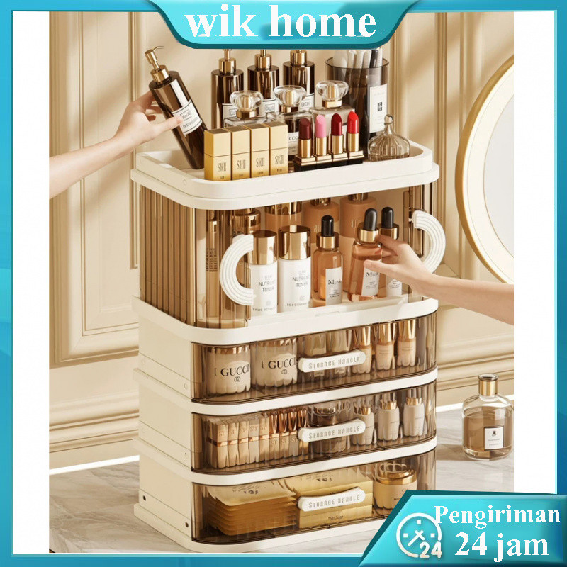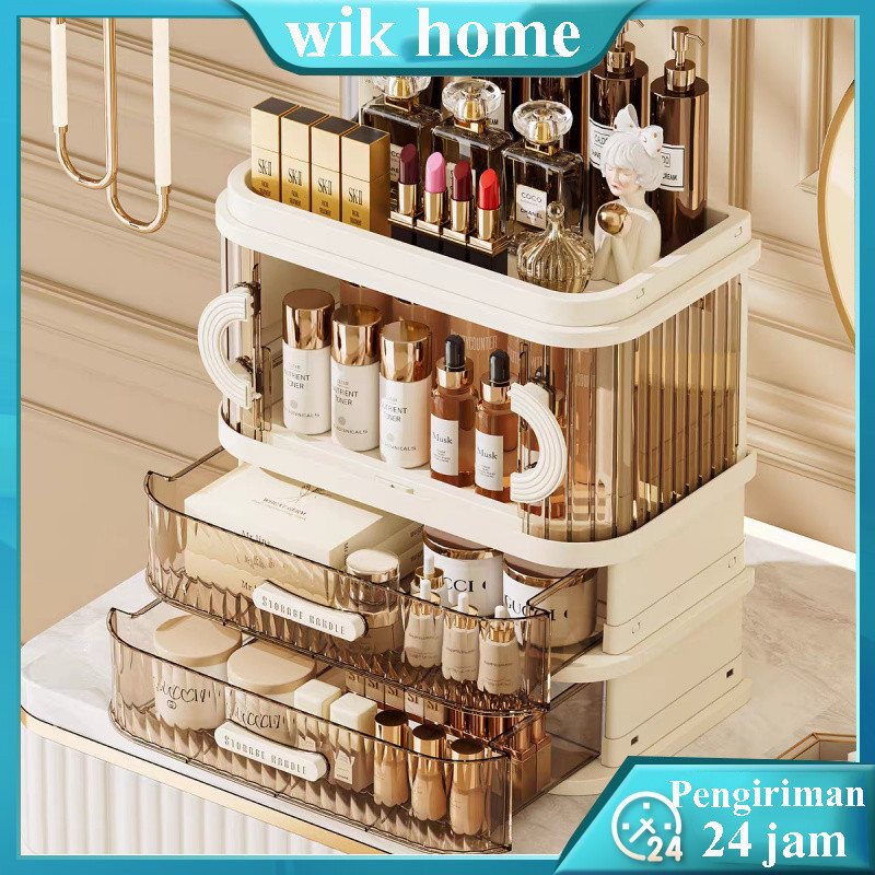Kotak penyimpanan kosmetik desktop tahan debu dengan laci, meja rias, lemari rak penyimpanan masker wajah Plastik Lemari
