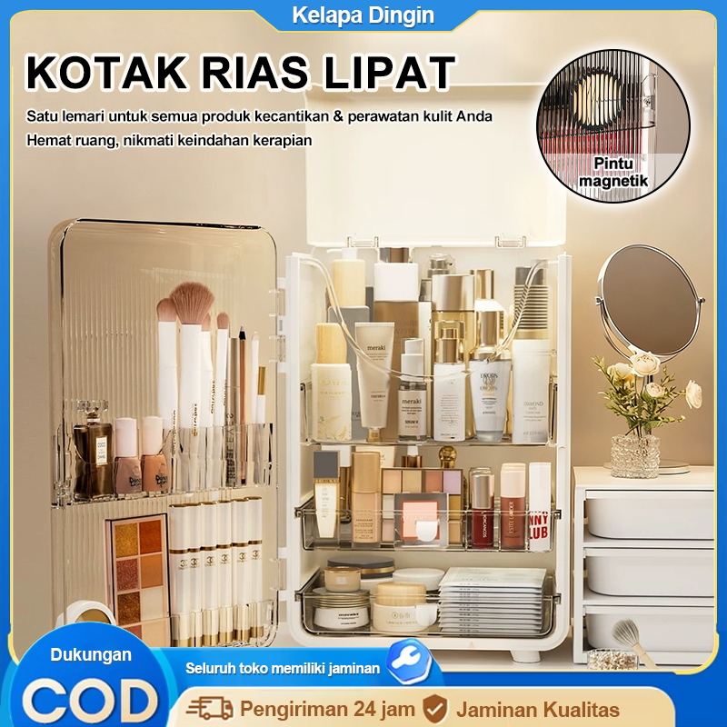 Kelapa Dingin Kotak Kosmetik Lipat Penyimpanan Multifungsi, Penyimpanan Multi-Lapis, Menyimpan Kuas Makeup Dan Produk Pe