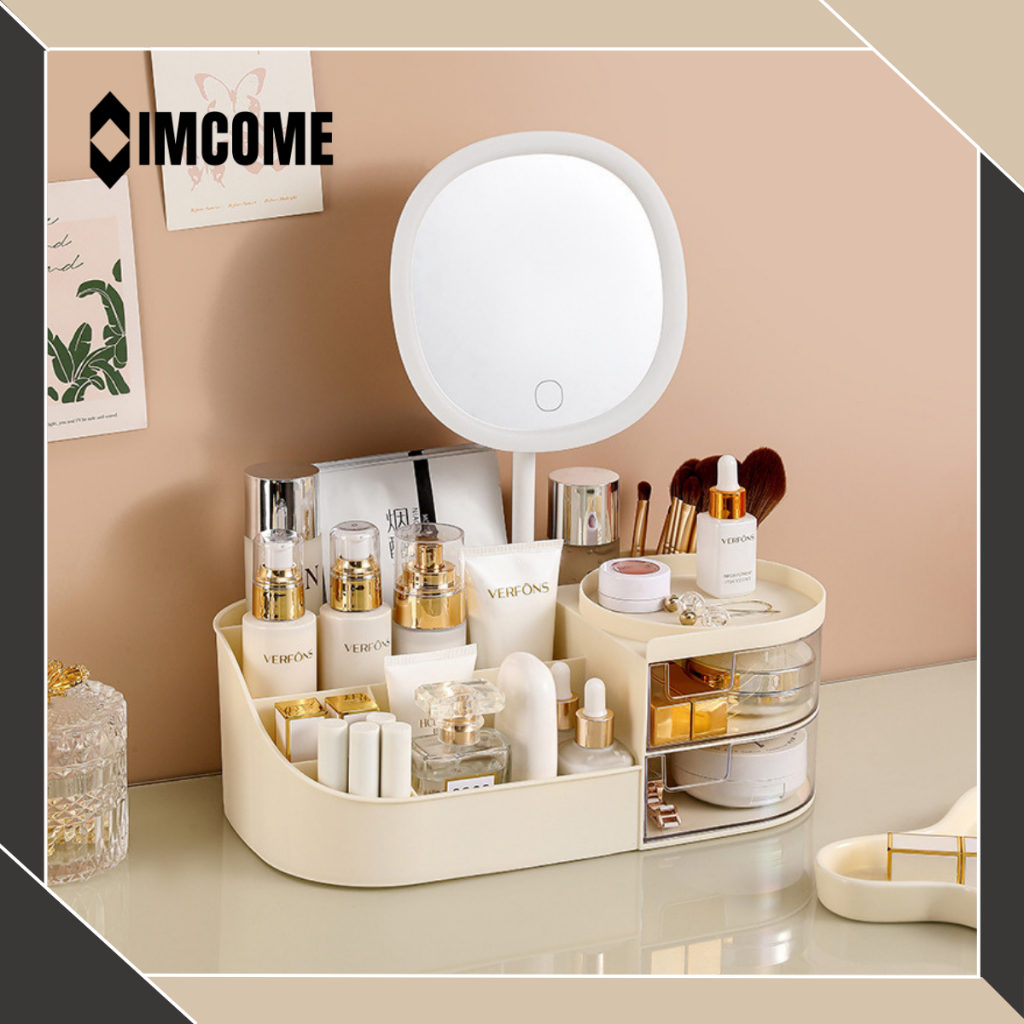 IMCOME Rak Kosmetik Makeup dan Organizer Meja Alat Tulis Pensil Kotak Tempat Penyimpanan Kosmetik Makeup Alat Tulis Pens