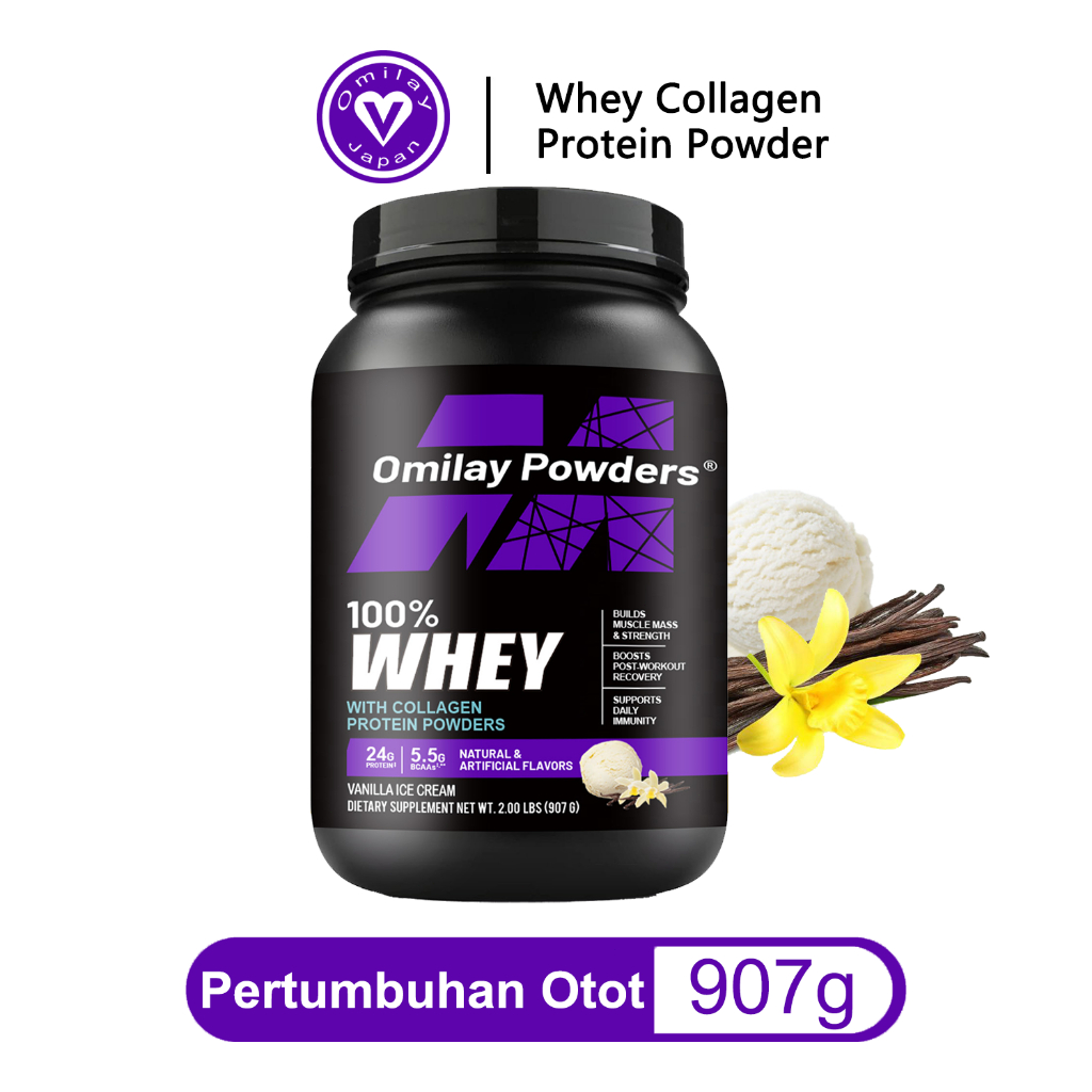 Omilay Whey Protein Powder Susu Protein Fat Burner Suplemen with BCAA Rasa Cokelat Susu 2LBS