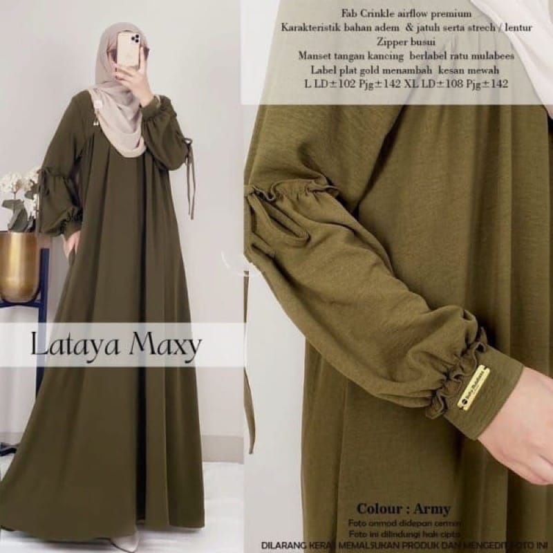 Dizzah Gamisku Dress LATAYA MAXY Cringkle Airflow Gamis Polos Bahan kringkle premium LD 110- 120 Gamis Wanita Busui Friendly