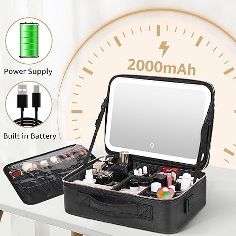 Tas Makeup Lampu LED Makeupartist Bag S / L Full LED Mirror MUA Beauty Case 3 Warna LED Lampu 2000mAh Rechargeable Tas