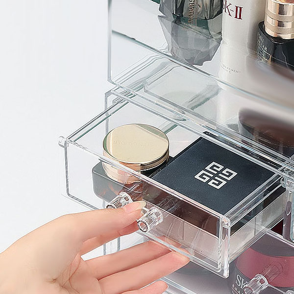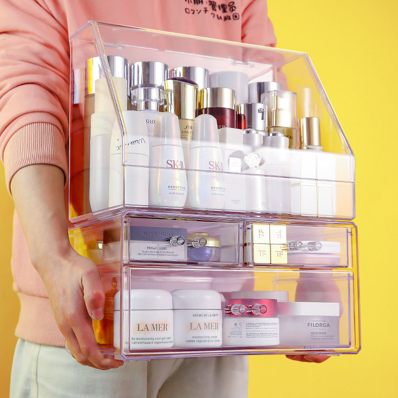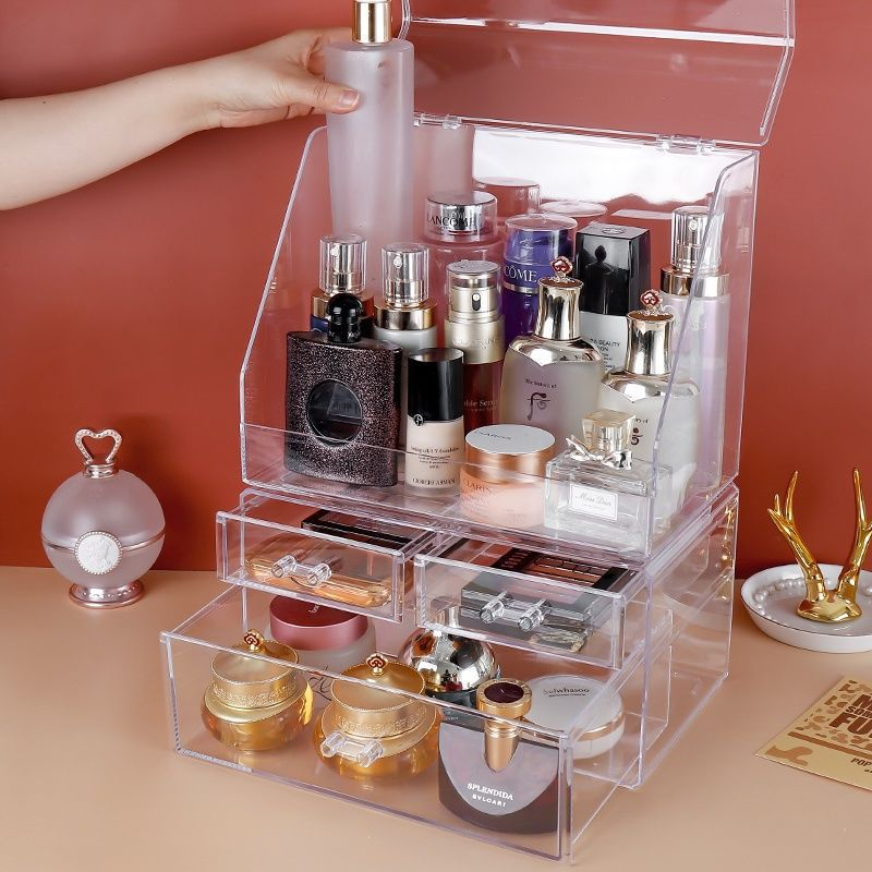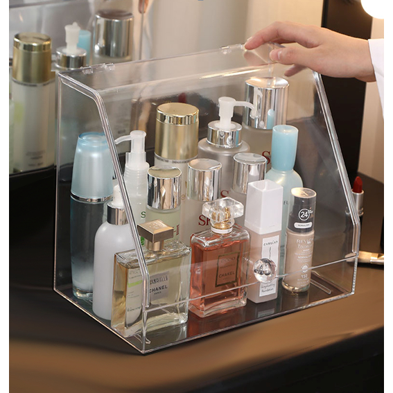 Rak Kosmetik Acrylic Transparan Multifungsi dengan Penutup Anti Debu / Rak Make Up Skincare Storage Box Organizer / Peny