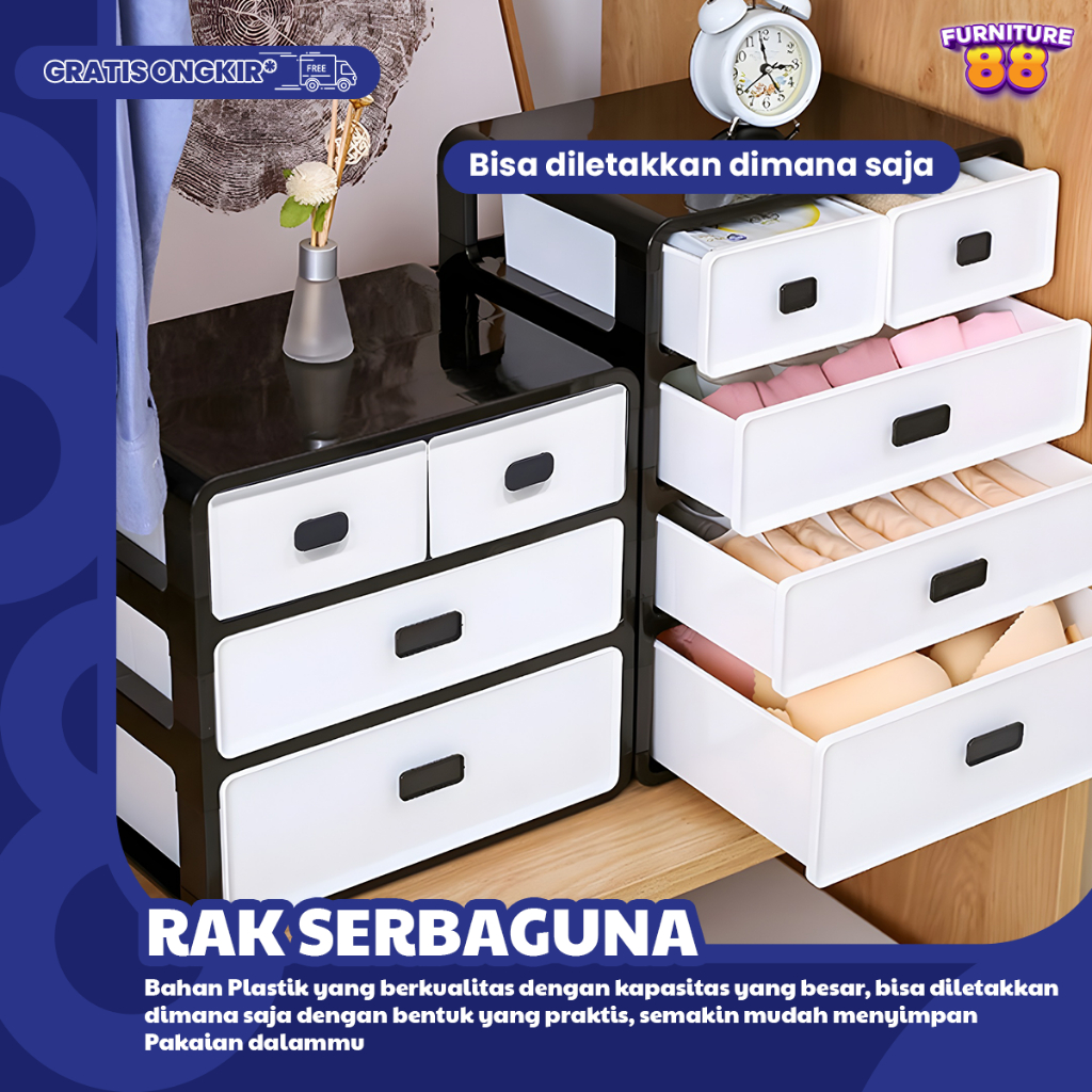 Rak Kosmetik 5 Laci Storage Box Laci Rak Make Up 4 Susun Wadah Cosmetic Kotak Serbaguna