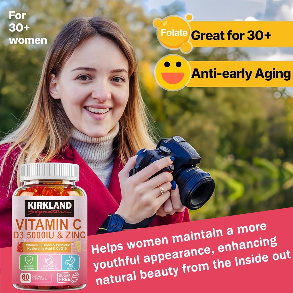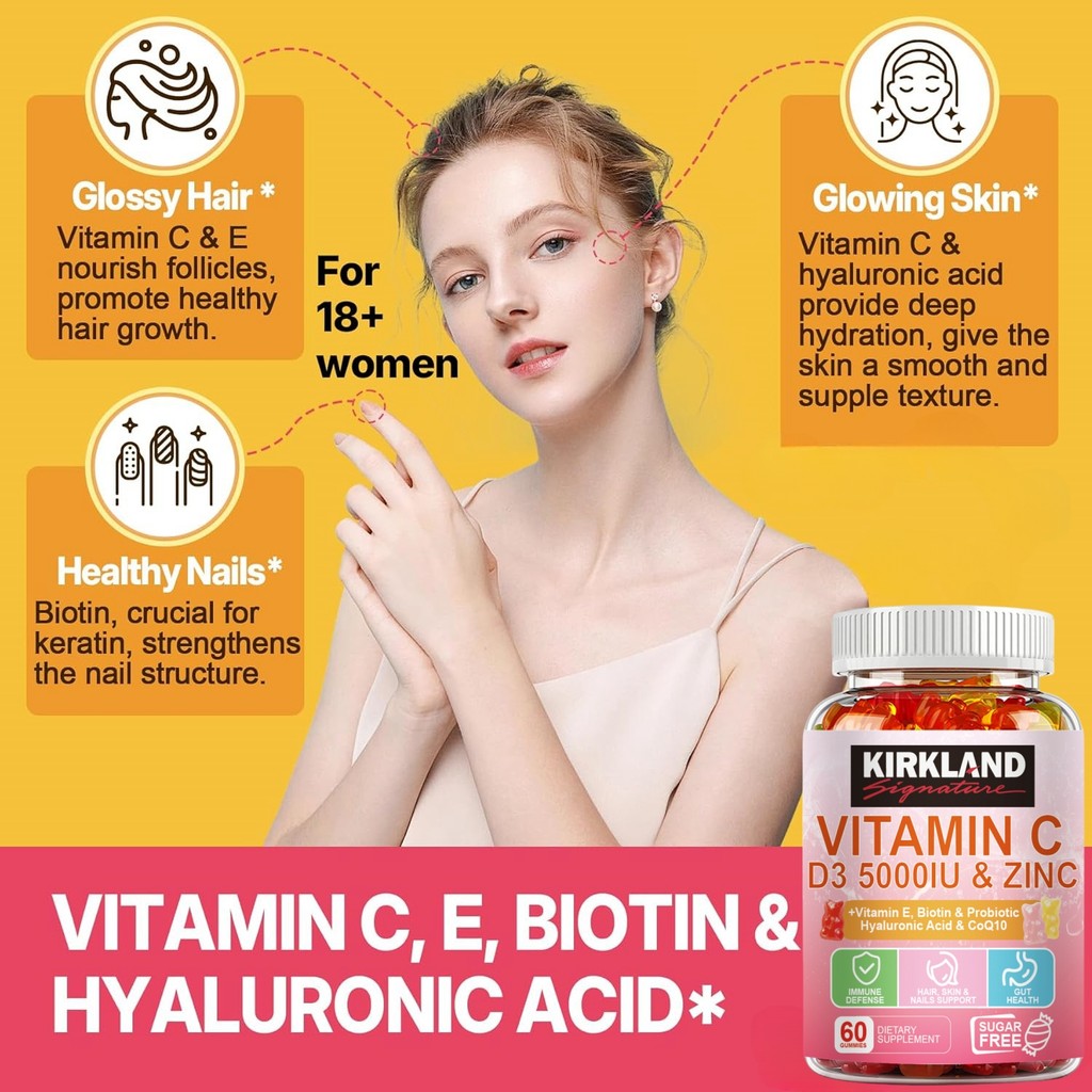 Vitamin C D3 5000IU & Zinc Gummy Daya Tahan Tubuh Kuat, Penyerapan Kalsium, Antioksidan Suplemen Imun Dewasa & Anak 4+ D