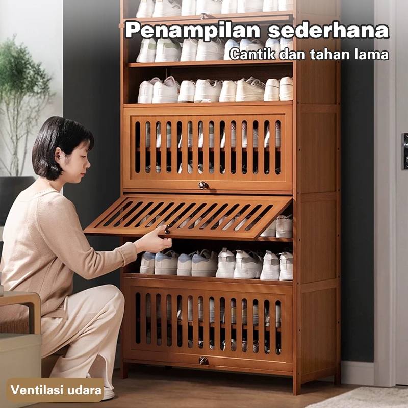 Kosistar Lemari Sepatu tertutup Rak sepatu Kayu Rak Sepatu Susun Sepatu Pakain Serbaguna Sehat dan bebas formaldehida