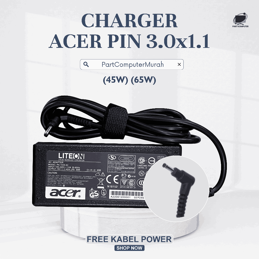 [PROMO] Adaptor Charger Laptop Acer 19V 342A DC 30x11mm Acer Pin Kecil + Kabel Power GARANSI 1 TAHUN