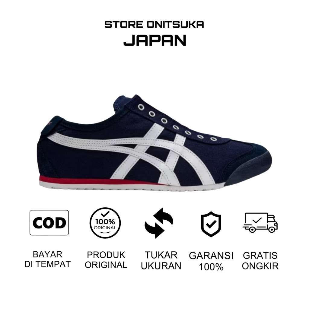 Sepatu onitsuka slip on navy white red/ sepatu sneakers/ sepatu wanita/ sepatu pria/ sepatu original