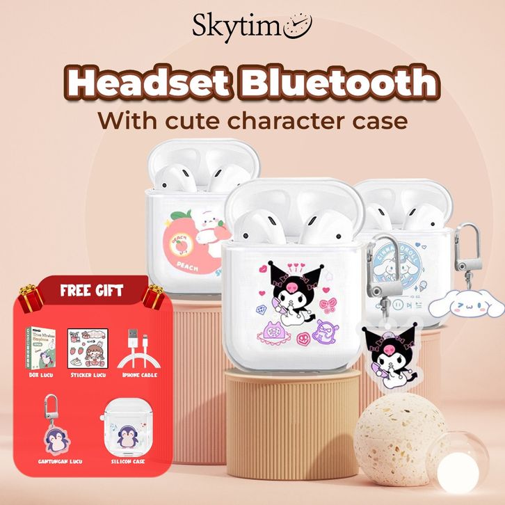 (FREE GIFT) Skytime Cute Character Earphone Bluetooth Wireless EP06 TWS Lucu Touch Control Calling
