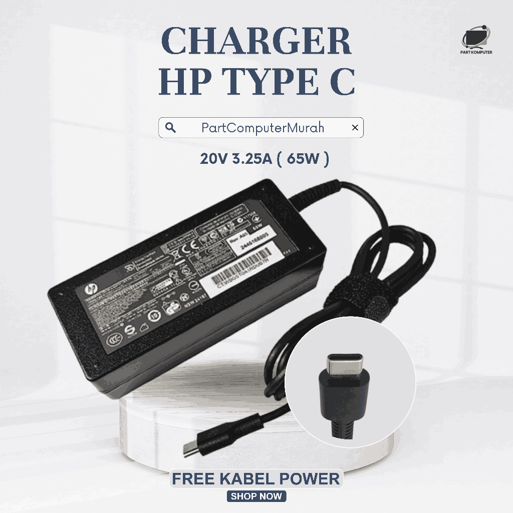 [PROMO] Adaptor Charger Laptop HP 65W 20V 325A Type C Include Kabel Power Garansi 1 Tahun