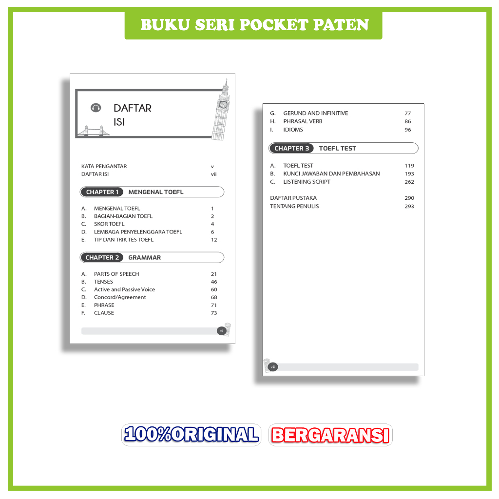 FLASH SALE Buku Toefl Pocket Paten Lolos Tes TOEFL TOEIC Bonus Aplikasi