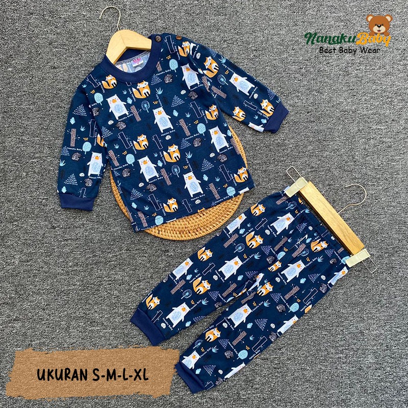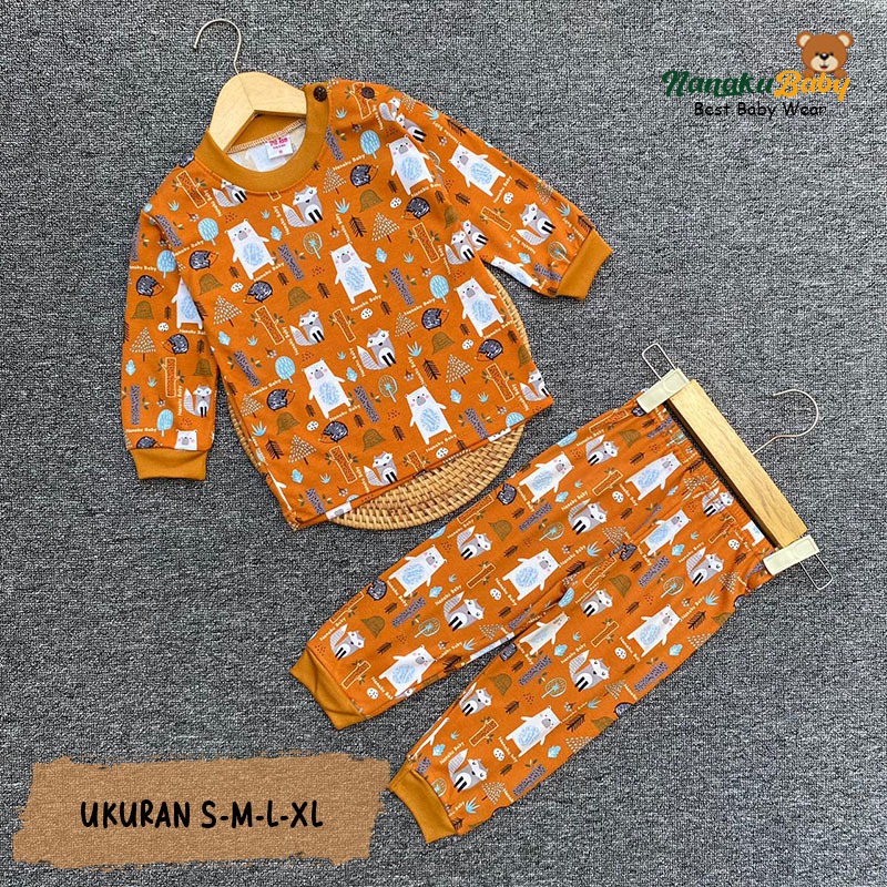 Nanaku Baby - Setelan Piyama Anak & Bayi S M L XL | Usia 3 Bulan–3 Tahun | Motif Pohon Landak Printing | Kaos PE Double