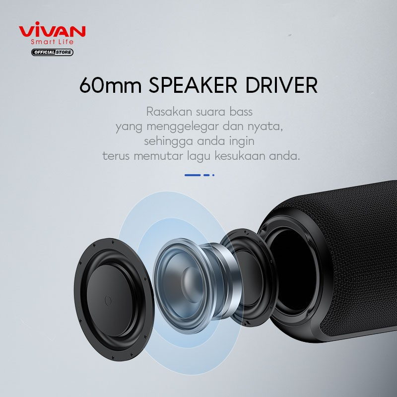 Speaker Bluetooth By VIVAN VS12 V5.0 Surround Sound 360° Waterproof Sound Quality Musik Box Blueetoth Speaker Aktif