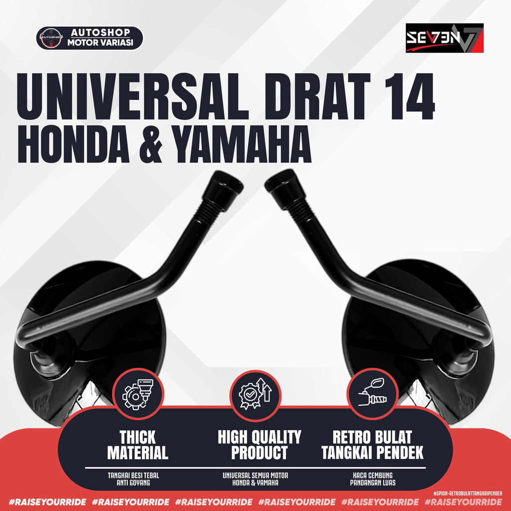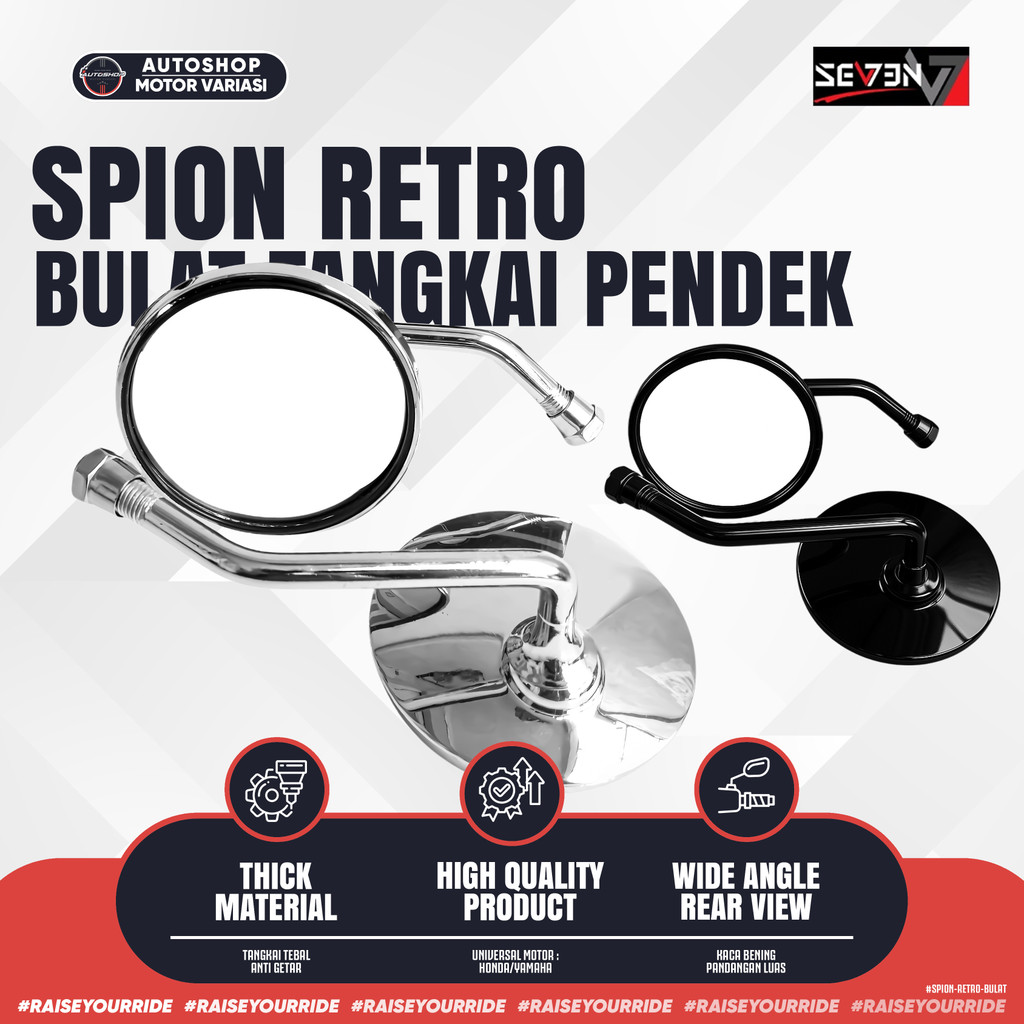 [PROMO] Spion Bulat FAZZIO SCOOPY FINO Retro Classic Kaca Cembung Bening Tangkai Pendek Universal Motor Seven