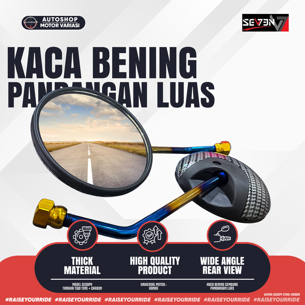 [PROMO] Spion Scoopy Two Tone Blue Gold Blue Carbon – Kaca Bening Cembung Universal Honda Yamaha