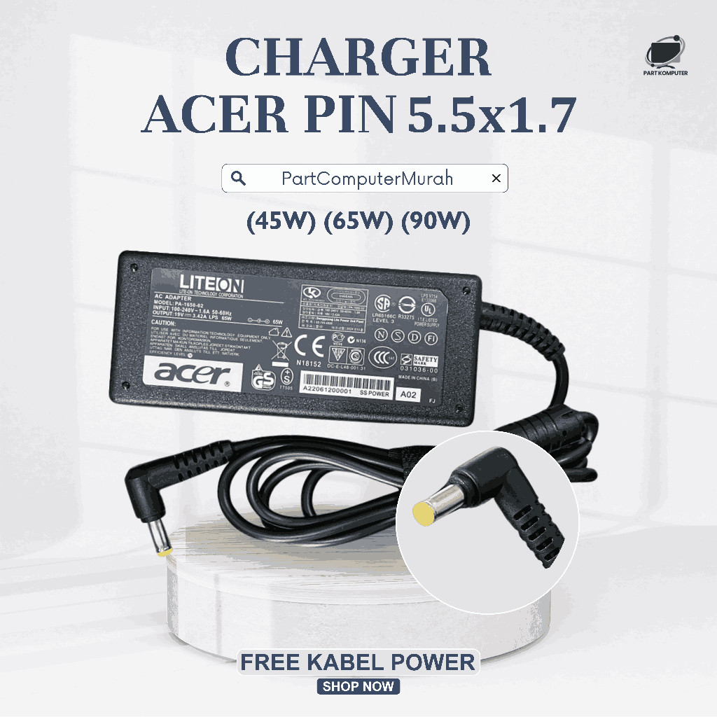 [PROMO] Adaptor Charger Notebook Laptop Acer Aspire 19V DC Pin 30x11mm dan 55x17mm 45W65W90W FREE KABEL POWER