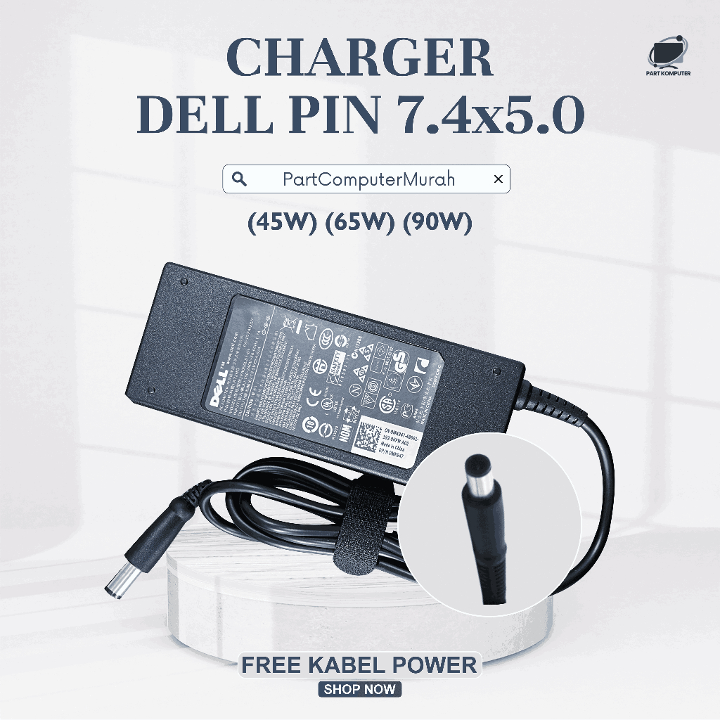 [PROMO] Adaptor Charger Laptop DELL Inspiron XPS Latitude DC Pin Besar 74x50mm 195V 45W65W90W Free Kabel Power