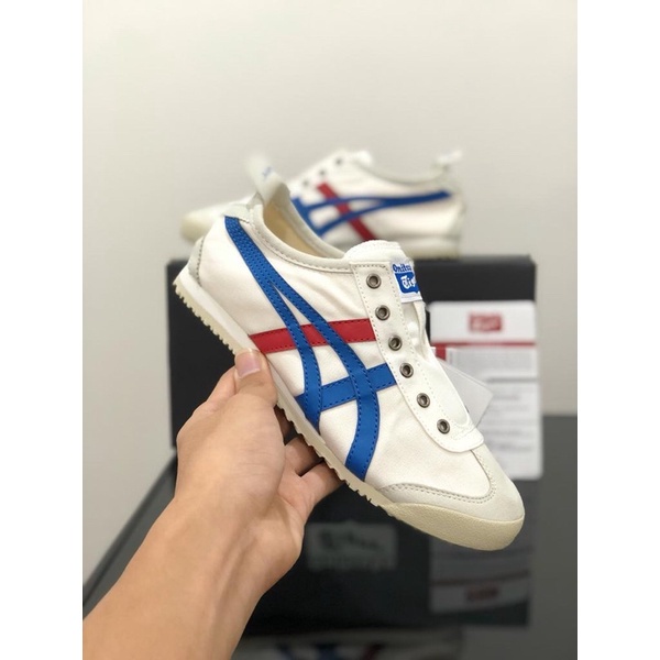 Promo Sepatu 0nitsuka Tiger Slip On White Blue Red